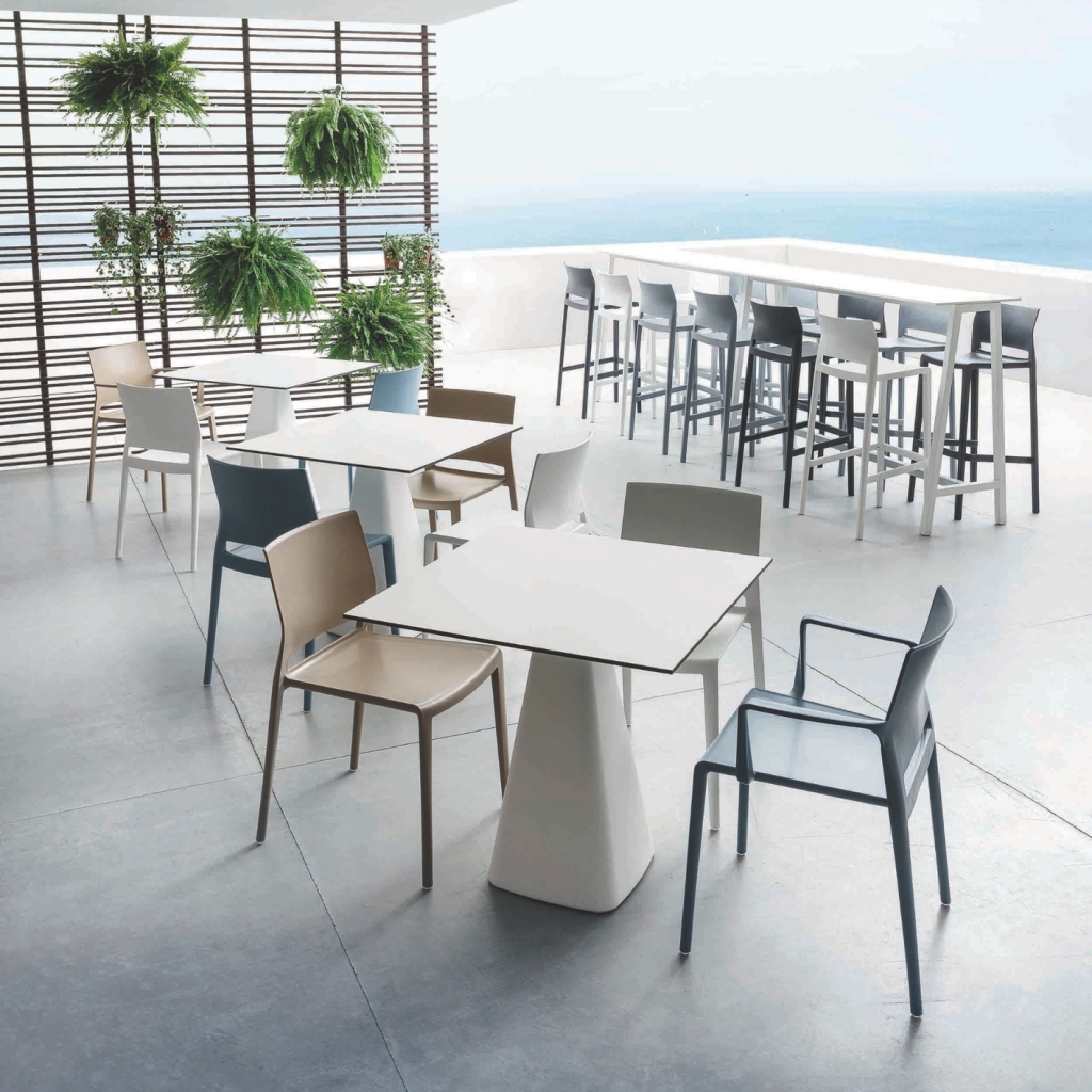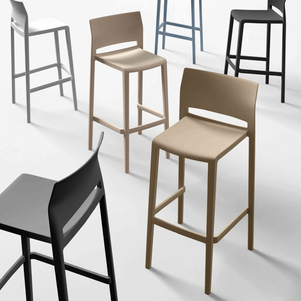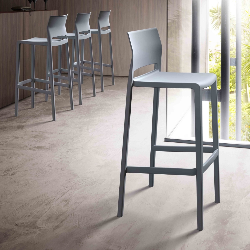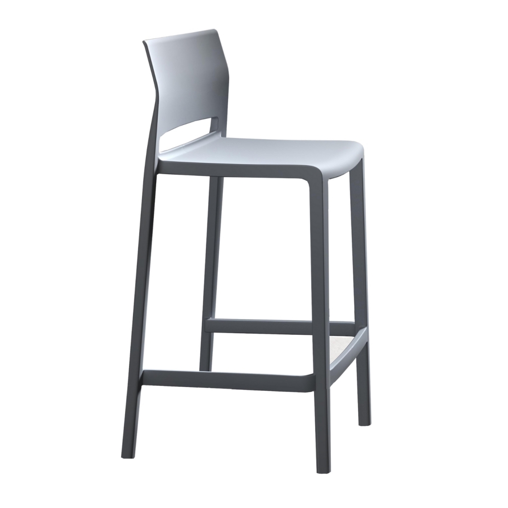 Tabouret bas NELL - Entièrement moulé en technopolymer gris perle