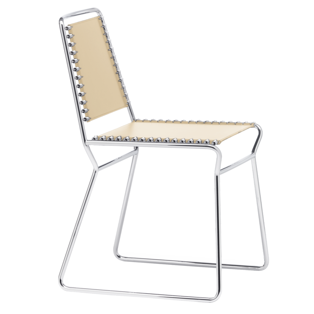L'assise et le dossier sont en cuir reconstitué noisette.