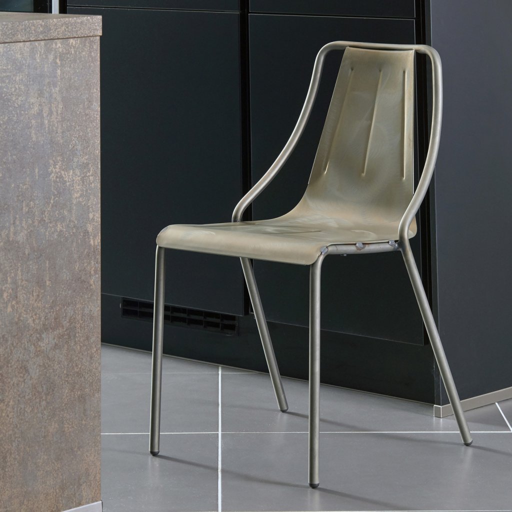 Chaise acier OLA - Entièrement en acier laqué transparent finition industriel