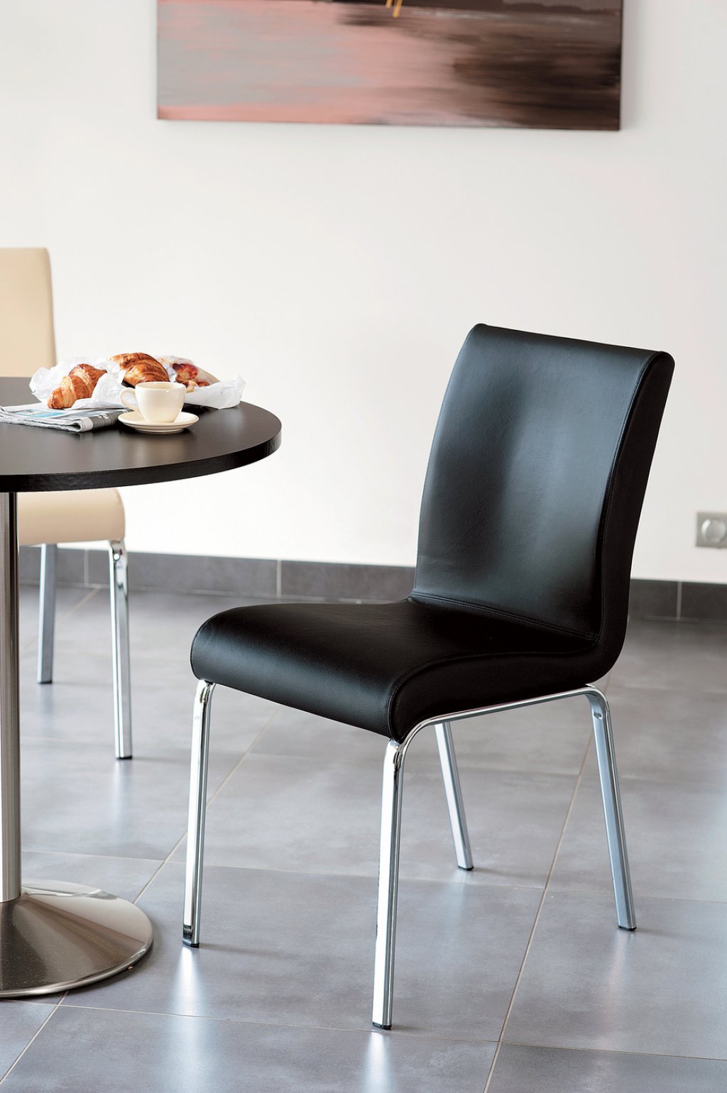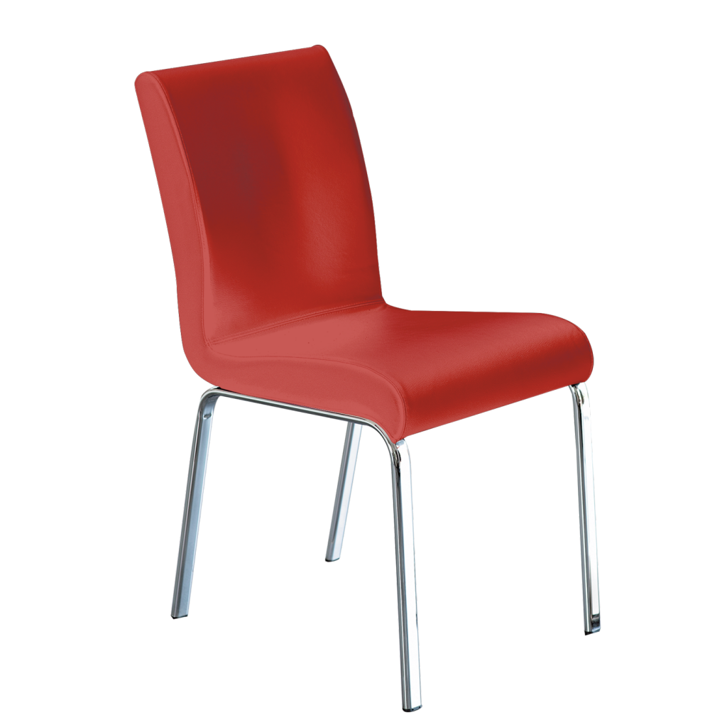 Chaise STONE - Structure chrome - Assise croûte de cuir Rouge