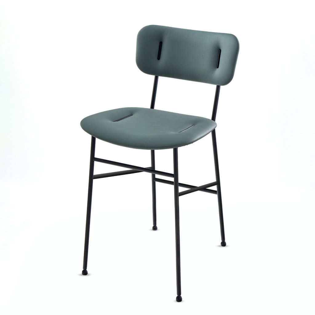 Chaise PIUMA-Structure noire-Dossier et assise écopelle Vert pin