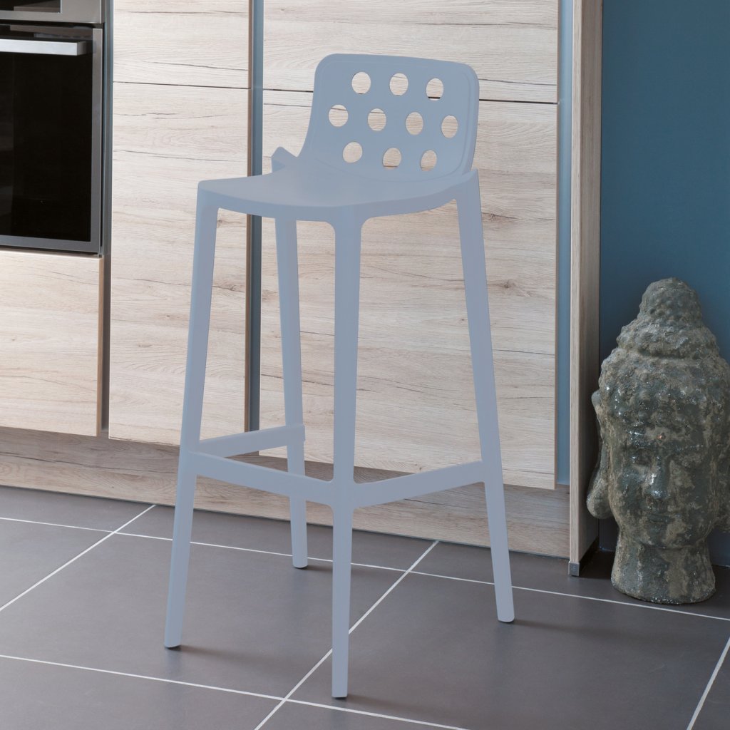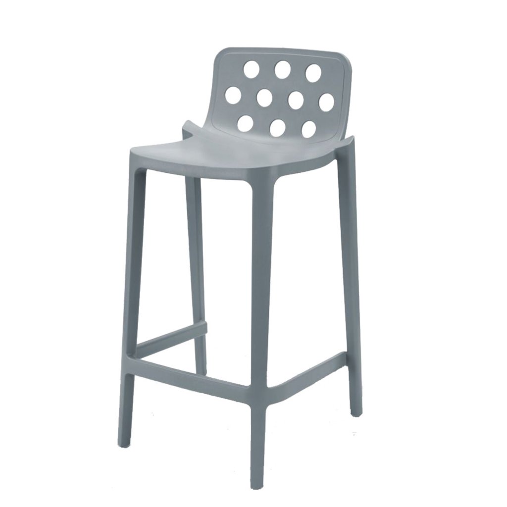 Tabouret bas H.66 ADELE - Entièrement moulé en polymère gris perle