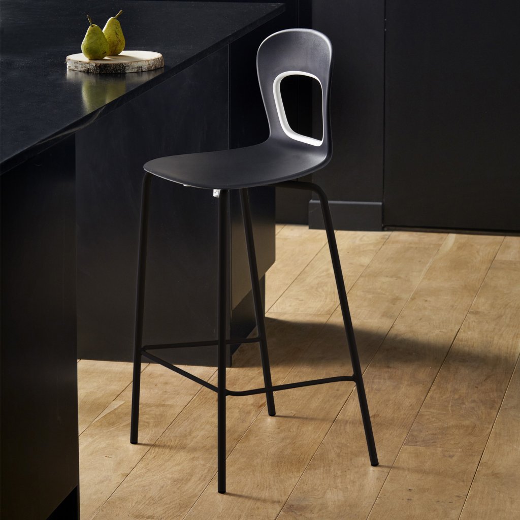 - L'assise et le dossier sont en technopolymère bi-colore noir et blanc.