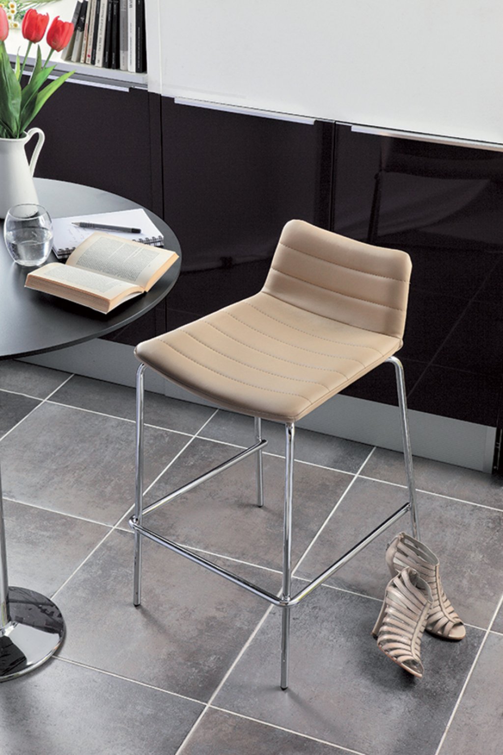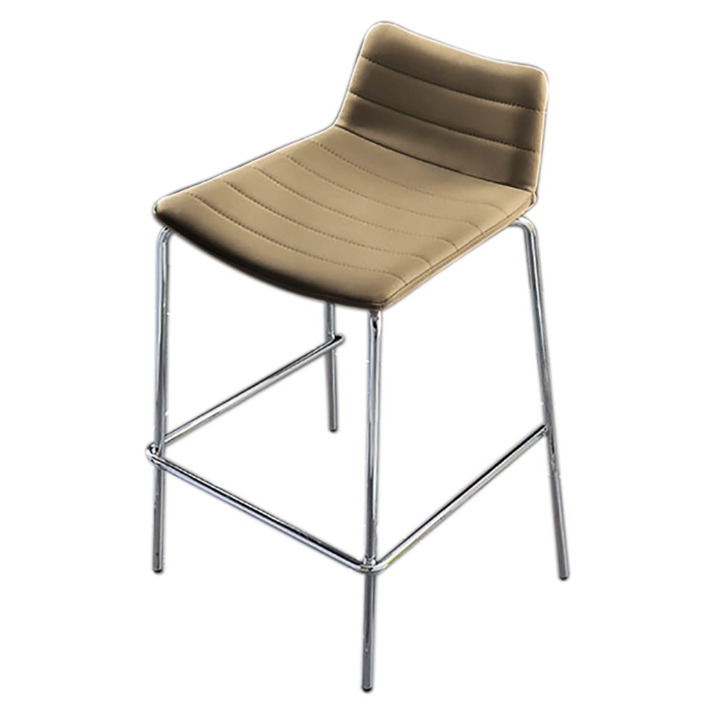- L'assise et le dossier sont ganis en mousse et revêtus de tissu 'écopelle' beige.