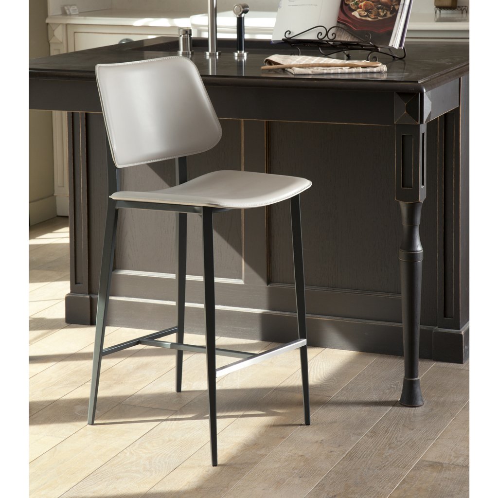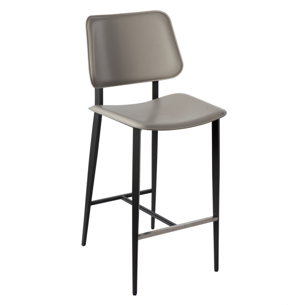 Tabouret bas JOE - Structure en acier graphite - Assise et dossier en cuir véritable gris cendre