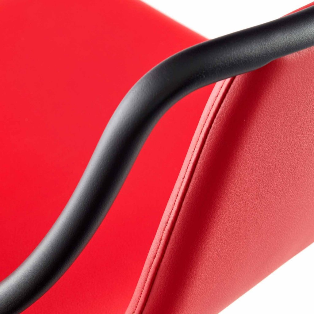 - L'assise et le dossier sont recouverts de tissu 'écopelle' rouge.