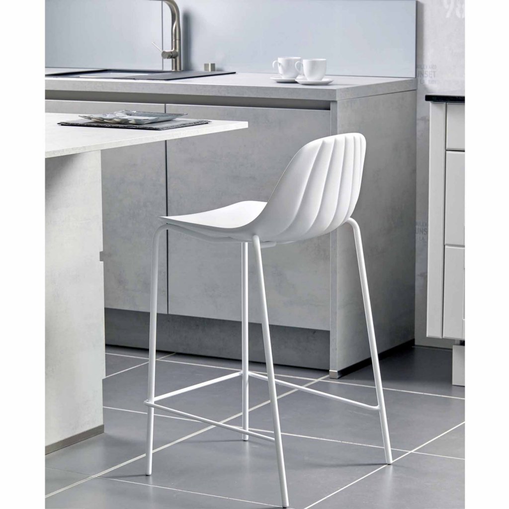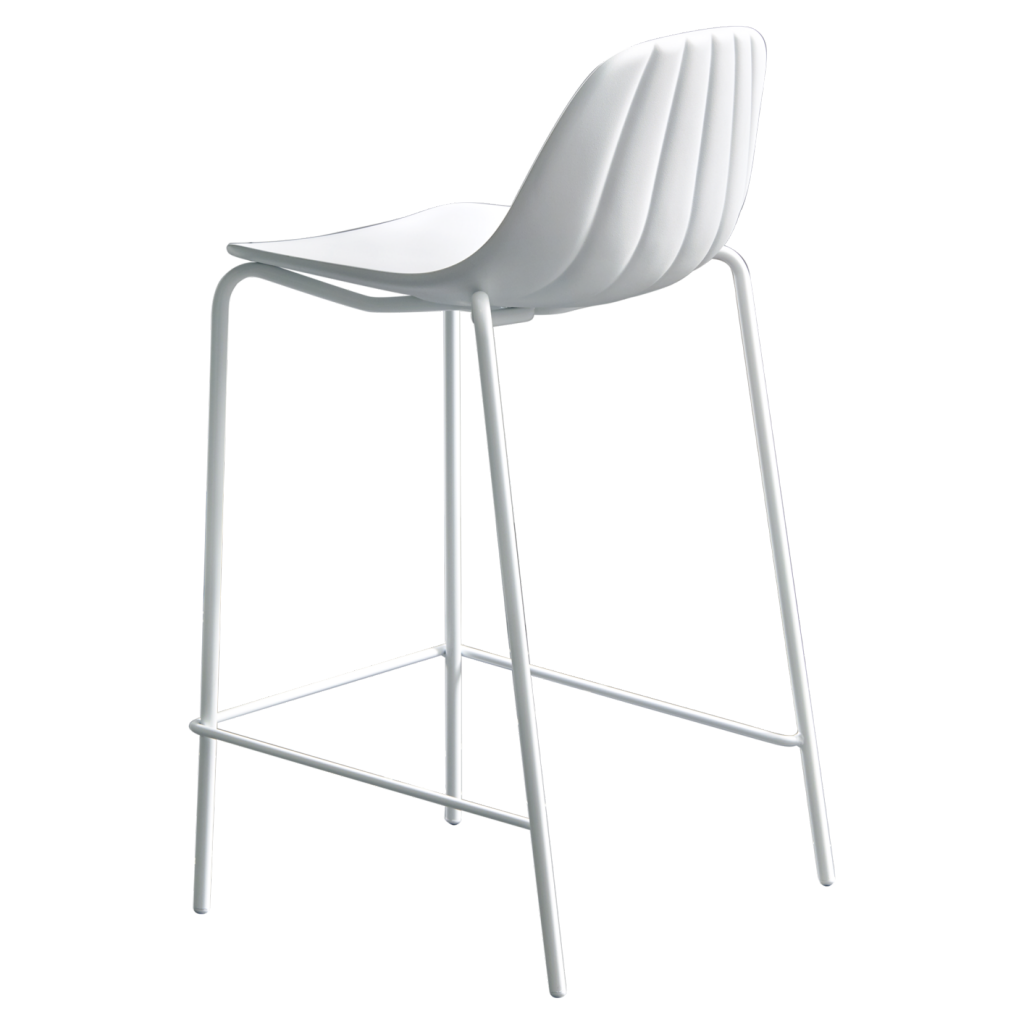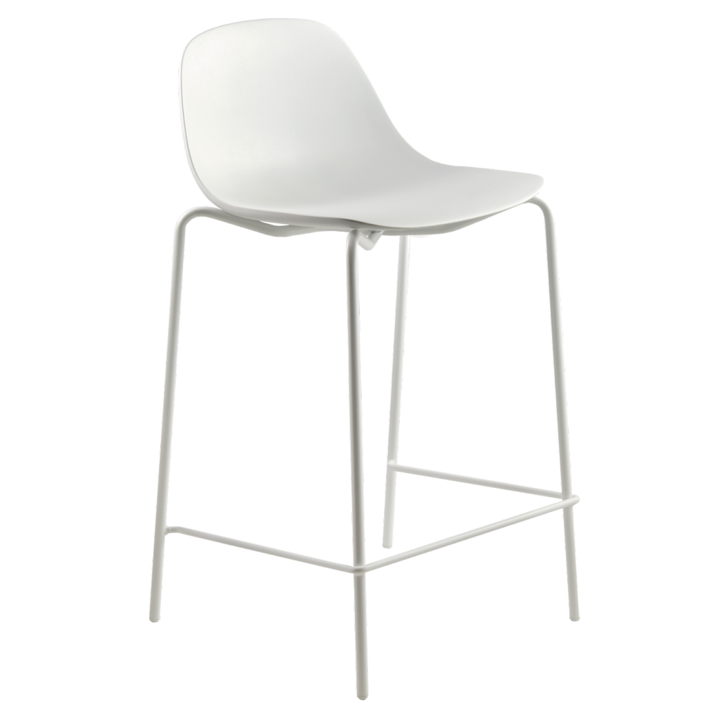 Tabouret bas SHELLY - Structure acier verni blanc- Assise polyuréthane blanc