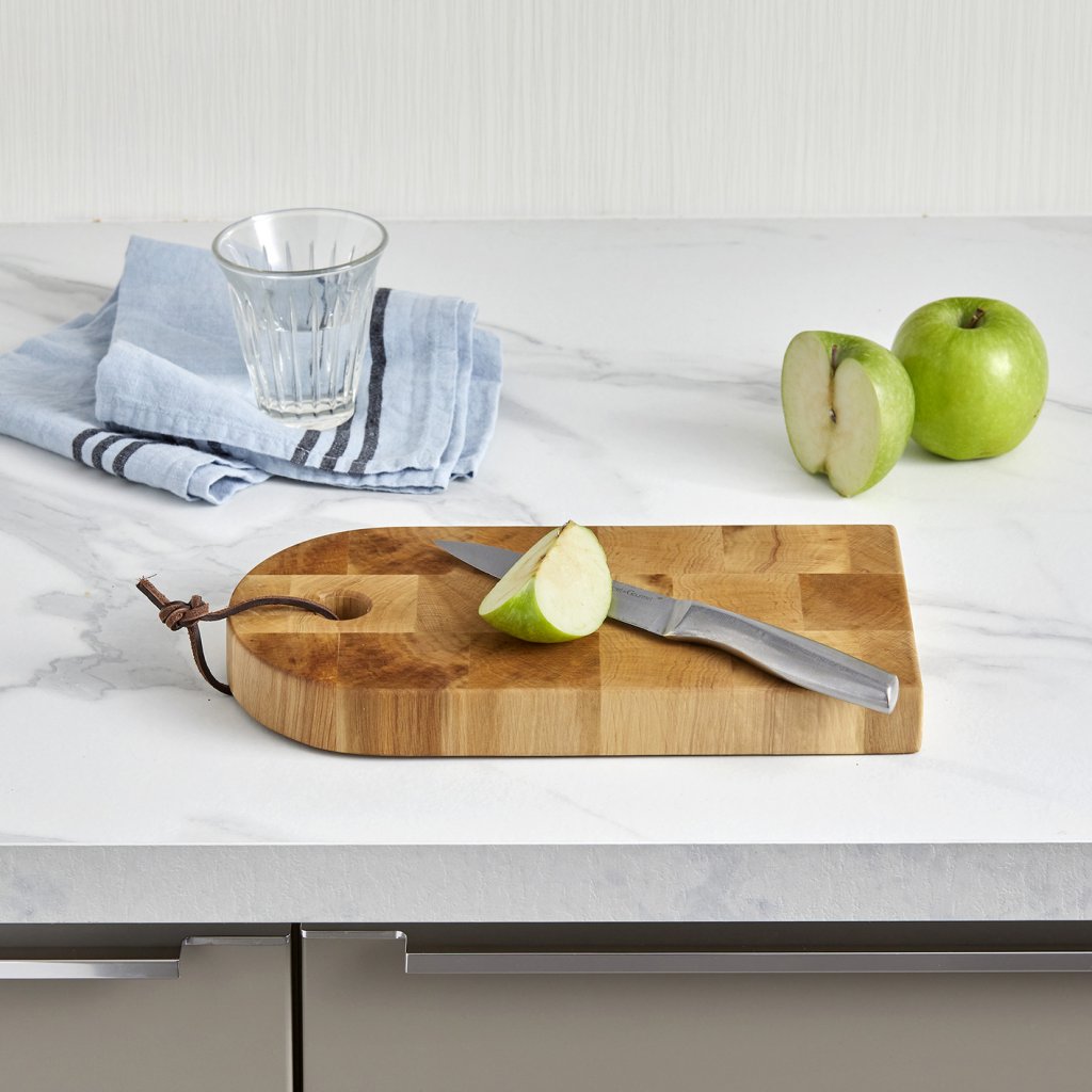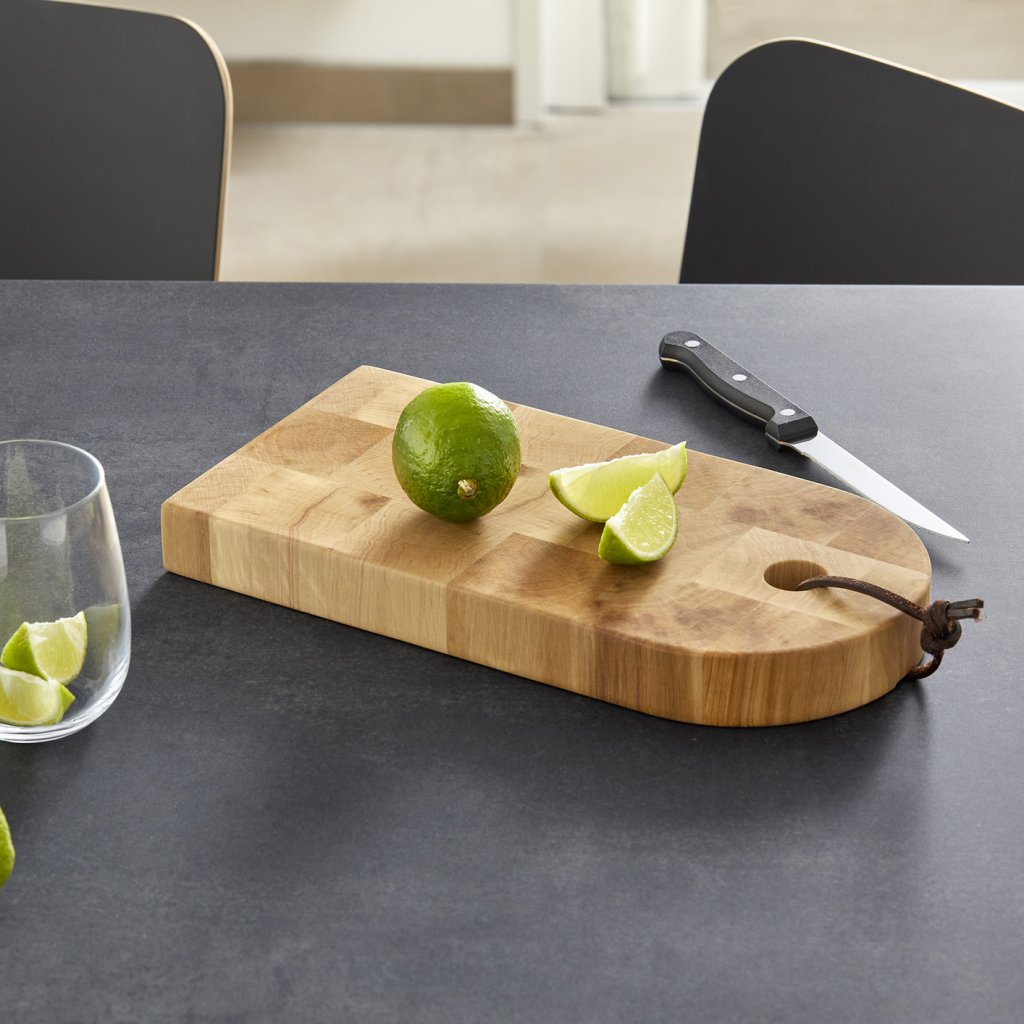 Planche billot à personnaliser-Charme en bois de bout -Fournie avec lanière en cuirs