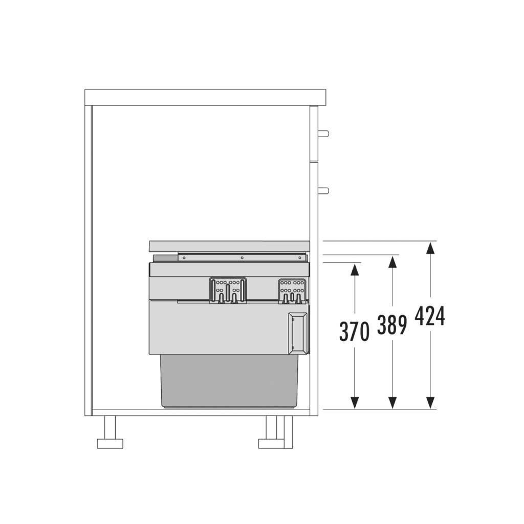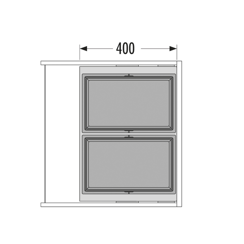 Poubelle pour meuble de 600mm composée de 2 bacs : 2 x 28L et d'1 couvercle coulissant- l. 562 à 568 x P. 400 x H. 424mm - ouverture manuelle-gris orion